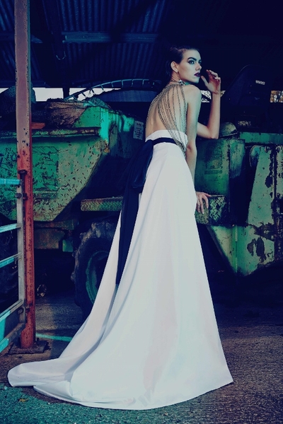Georgia Richardson recently graduated from the Manchester School of Art. Georgia grew up and attended The Royal Grammar School, in Worcester which is where she discovered her love for design and construction of clothing. Her initial inspiration for her final collection was formed by her research into car engines and from Michael Sandles ˜Del Tromler” statue.