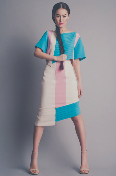 At this time the dresses were pulled in at the waist and flared out, usually with pleats. I wanted to create a contemporary style of pleating that could be used on fitted garments. The garments in the Orenda collection are about liberation; they provide women with choice. They aren't about covering up or showing skin, they a make a woman feel empowered and confident.